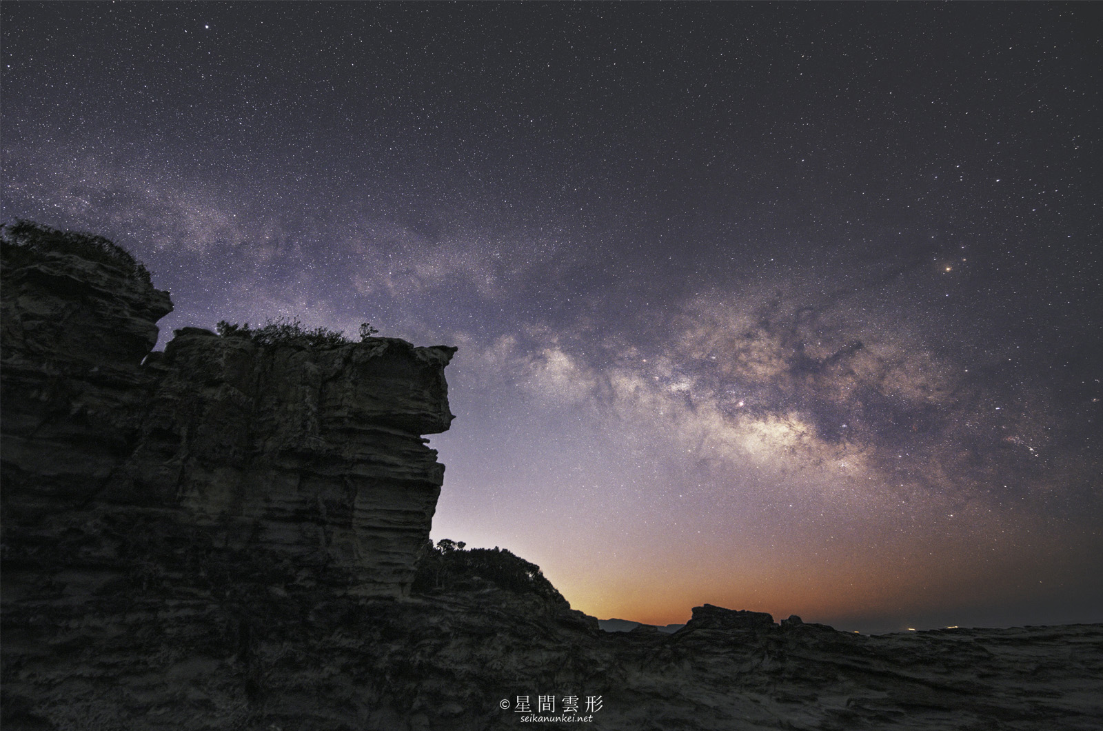もともとの計画では、DeepSky時間に赤道儀追尾で新星景を撮ろうと思ってました。が・・・、2月の撮影だったので天の川の高度が低く、岩との位置関係がベストになったタイミング(朝焼け間近の1フレームだけ)を採用です(笑)